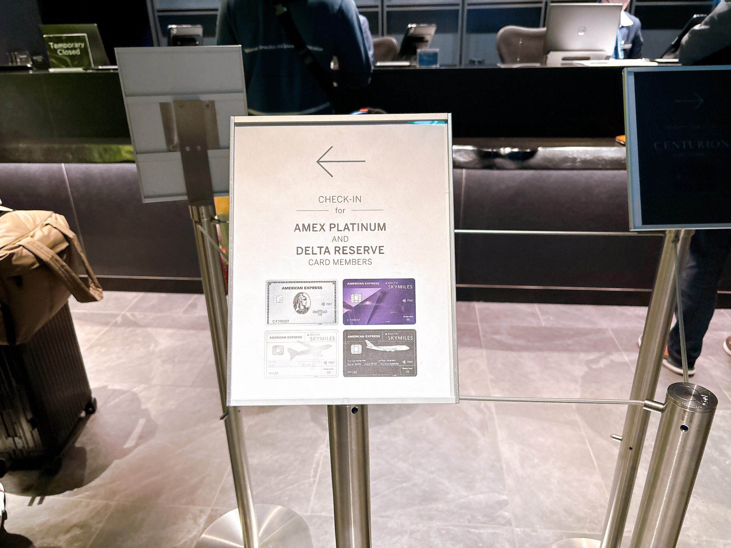 ラウンジは航空会社や搭乗クラスに関係なく、対象のアメックスカードを持っていて、当日に受付で提示すれば利用することができます。