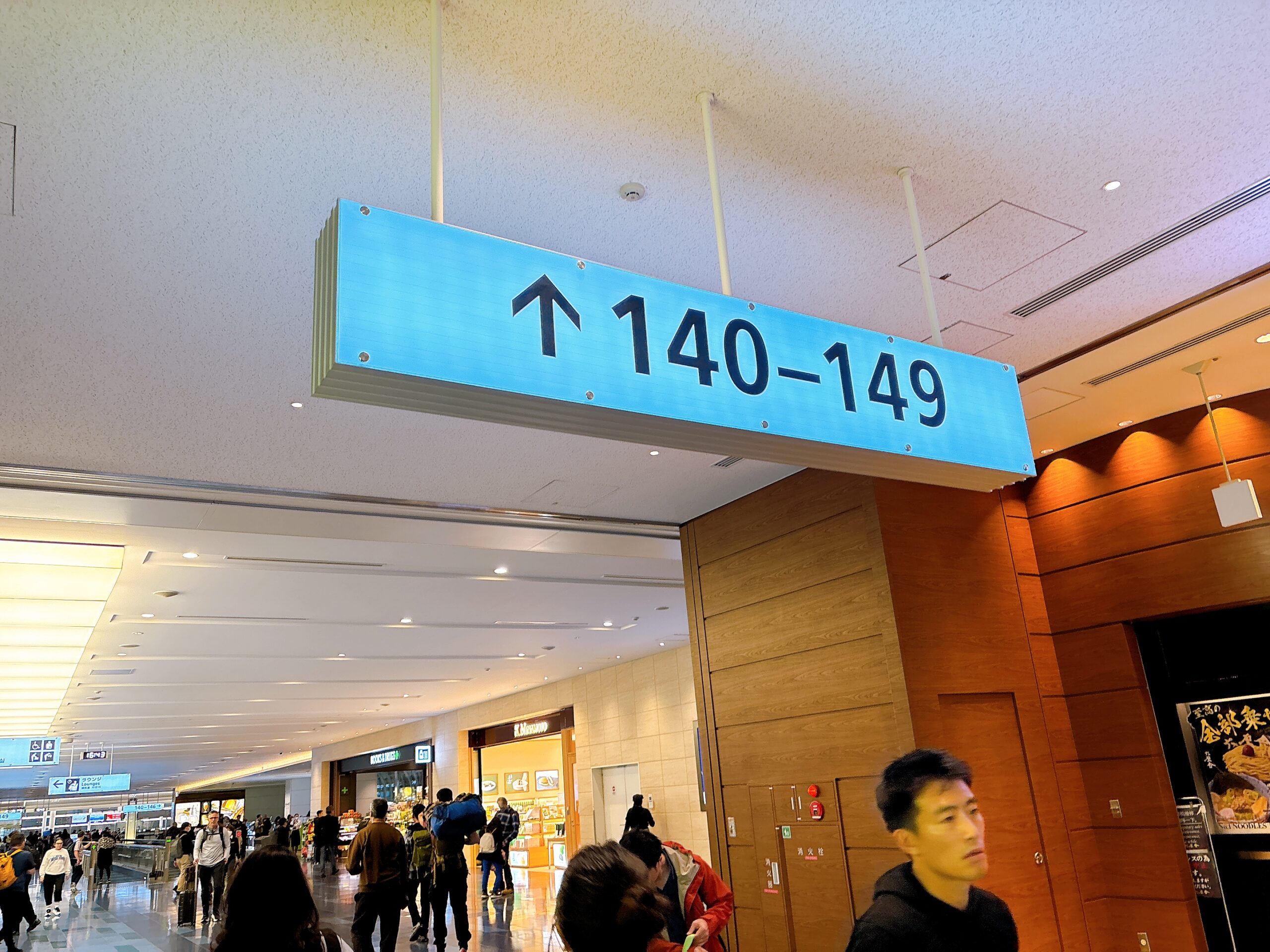 上記の140番-149番ゲートの看板が見えたら、航空会社ラウンジへの入口があります。