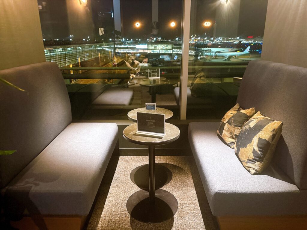 窓側の座席は混雑時はセンチュリオンラウンジカード保有者優先席になります。